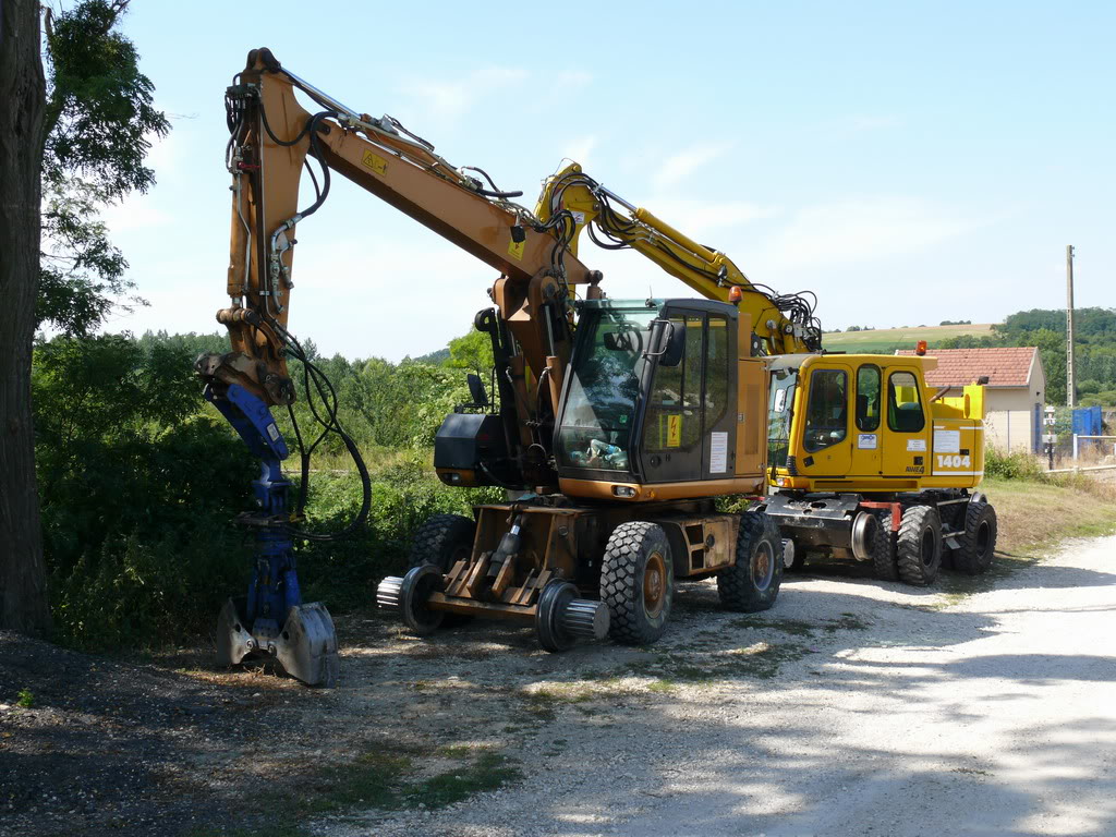 Voici un aperçu en image des pelles rail-route que j'ai vu aujourd'hui sur le RVB de la ligne 21 entre Tournan et Coulommiers. Ce RVB n'a rien de spectaculaire et tout est fait " a l'ancienne" Beaucoup de pelles donc sur ce chantier.