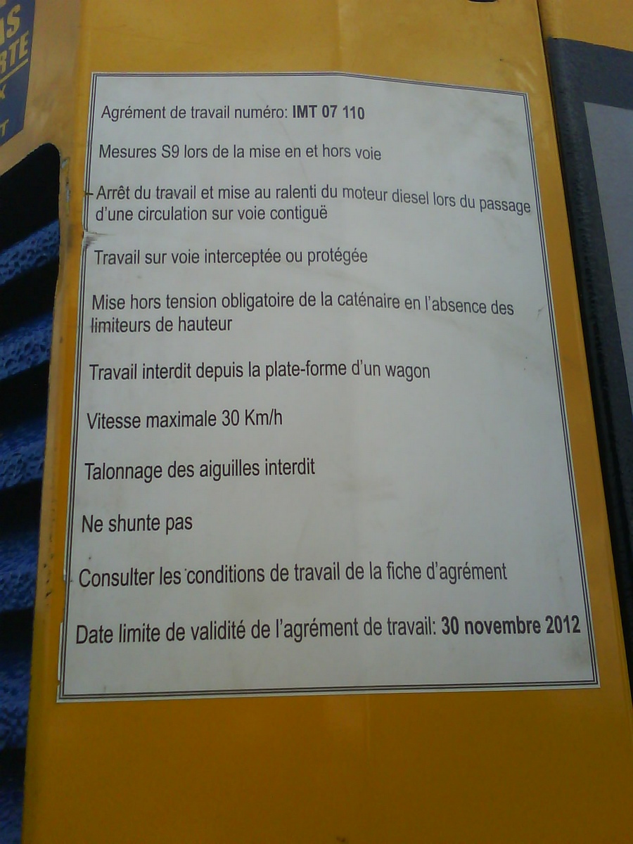 J'ai trouvé cette plaque sur le châssis vers les roue qui vont sur les rails