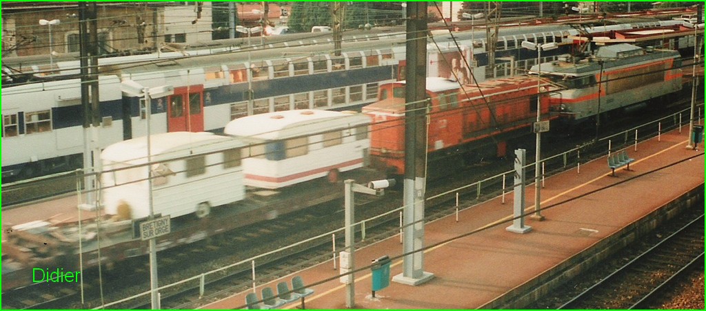 Deux ( vraies ) caravanes sur un L31 prises au vol sur un TTX en acheminement, à Brétigny ( Paris-Orléans ) en 1991 :D