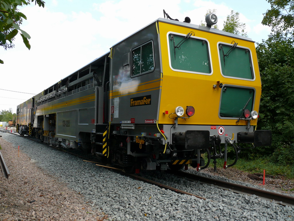 Décidément, le RVB de la ligne Montereau- Flamboin aura été riche en nouveautés pour moi. Après le G1206 de DVF , voici une bourreuse toute toute neuve pour BDVF. La couleur est originale est permet de repéré ces machines parmi les autres canaris!!