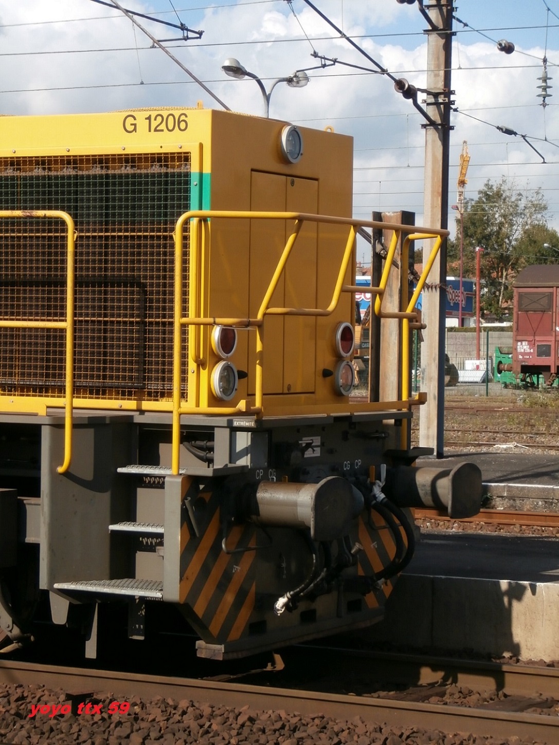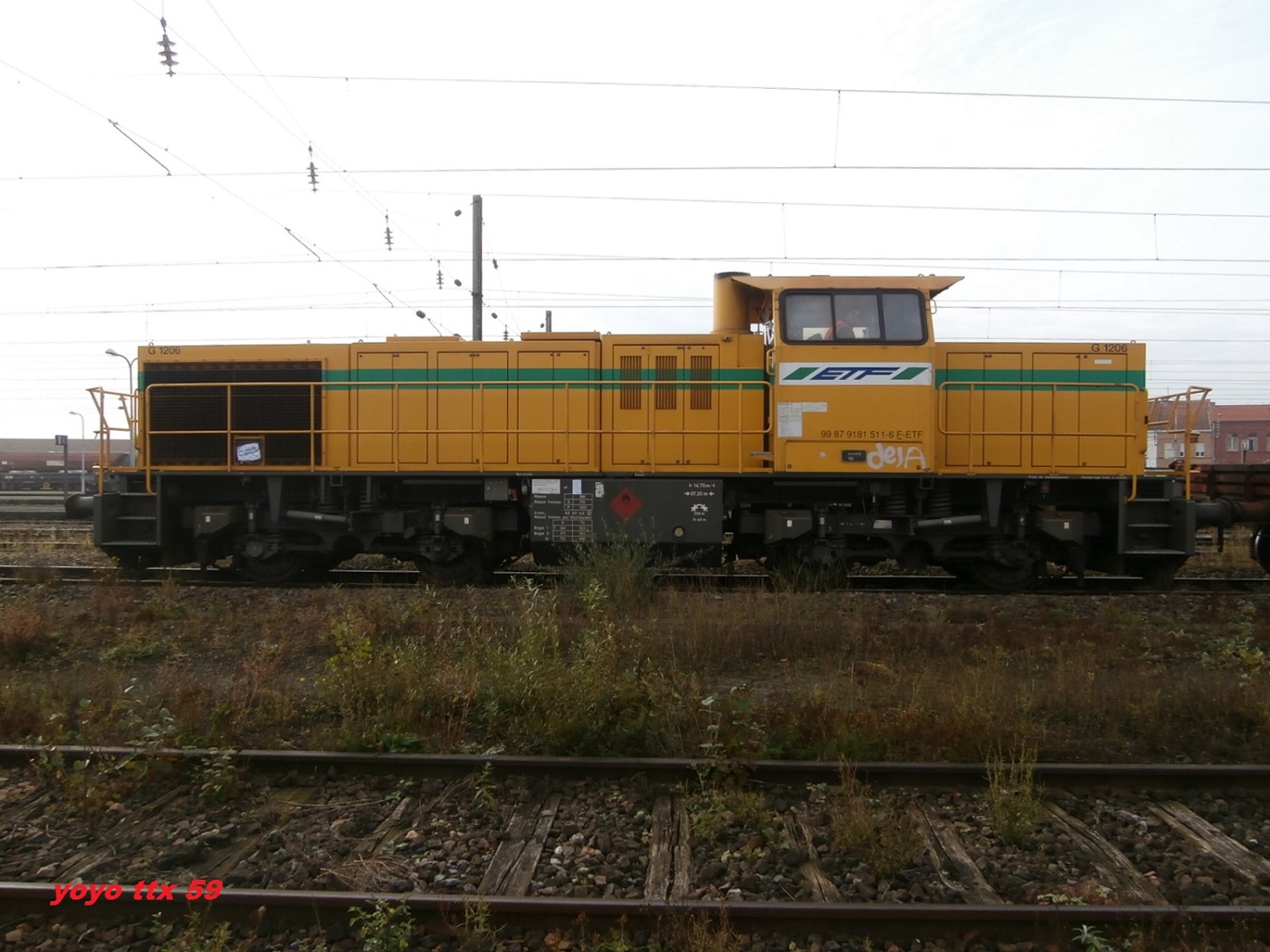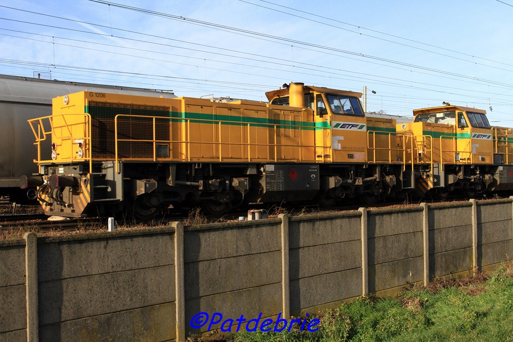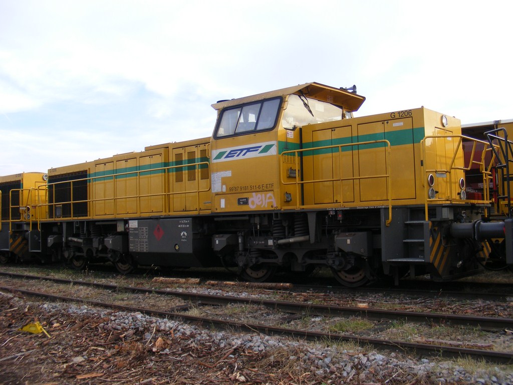 Voici une G 1206 ETF prise sur le triage d'Hourcade. Par contre comme la photo est floue je n'arrive pas à voir le numéro. Quand je compare aux autres photos du site, il y a quelques différences. Portes drapeaux gris, numéro UIC sur la cabine ...