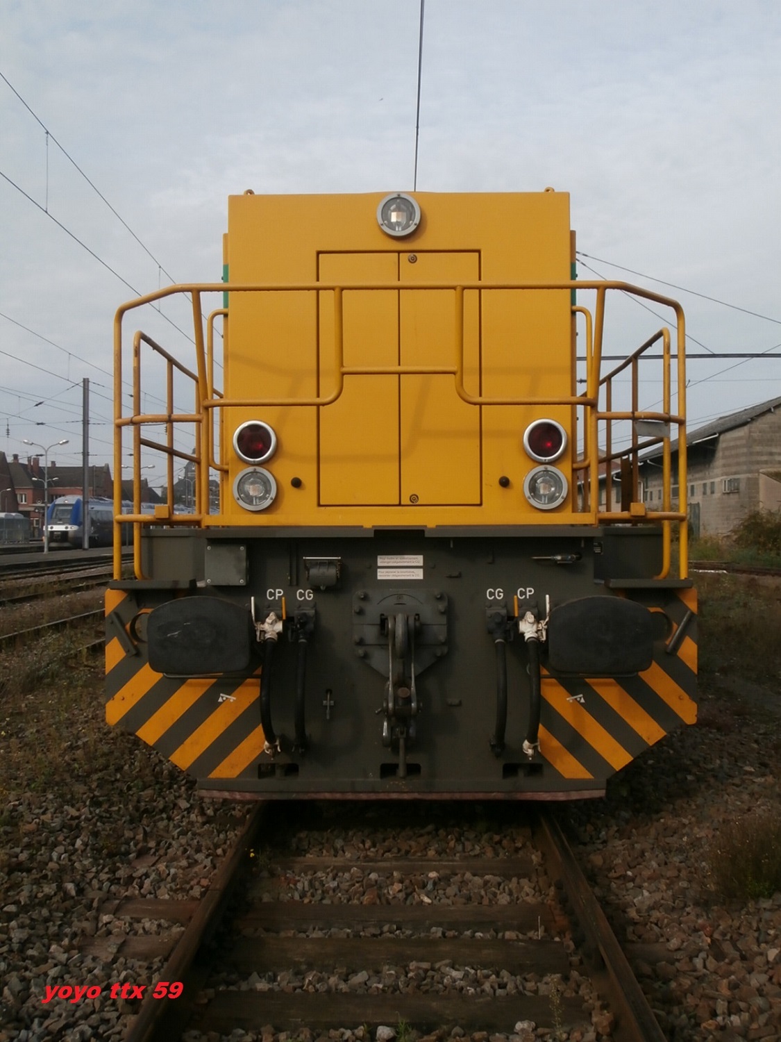 La voici en pousse en attente en gare d'Hazebrouck sur le chantier de changement d'appareils de voies le 11/10/2014 :