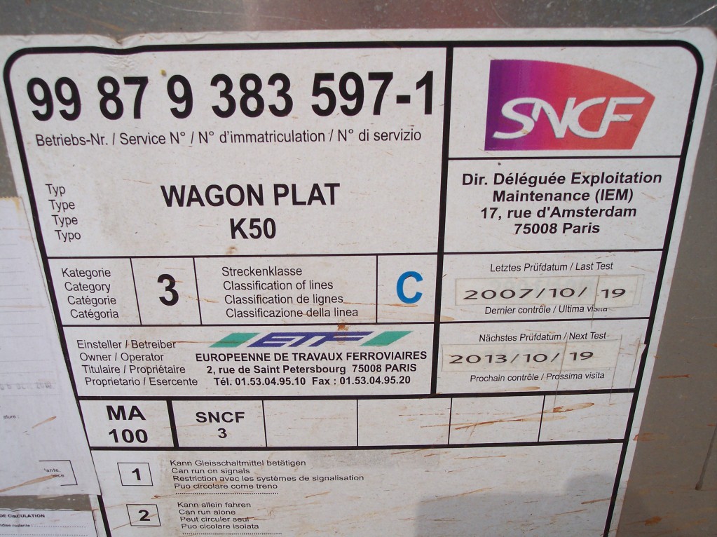 Fort possible, les agréments des wagons "simples" courant sur une période plus longue que pour les autres matériels. Alain a, par exemple, des photos de K50 Meccoli avec un agrément TR valable jusqu'en 2006.