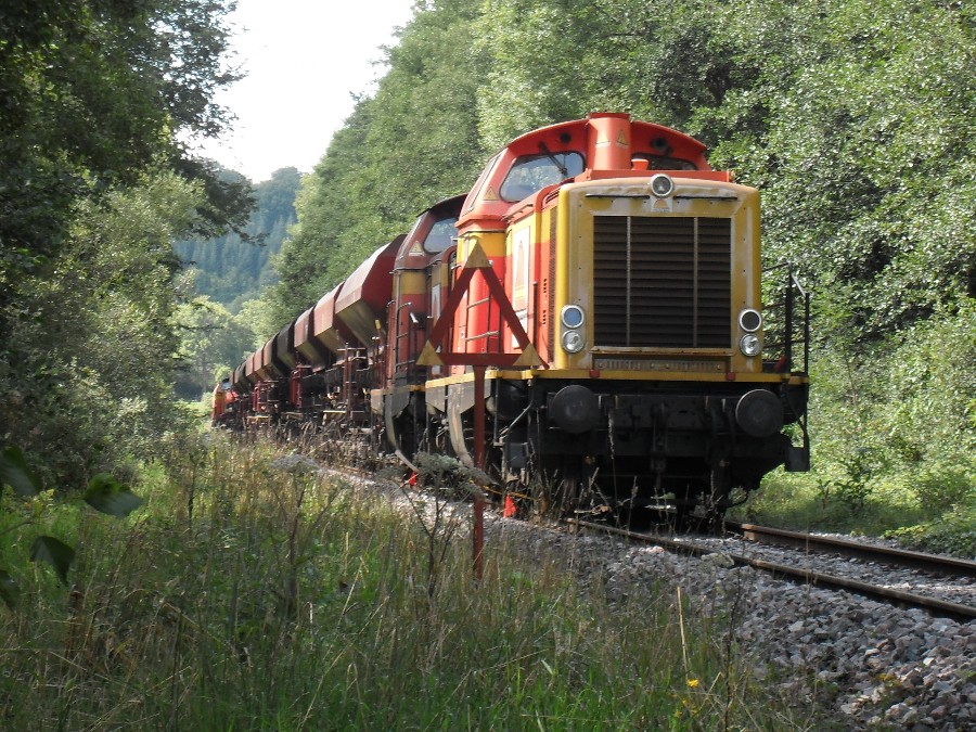 Ce week-end une rame de ballast composée de 10 trémies et deux wagon plat chargé d'une pelle est restée garée en pleine ligne entre la gare de Saône et le tunnel de Morre, n'ayant pas terminé de décharger son chargement elle n'est pas remontée au Valdahon.