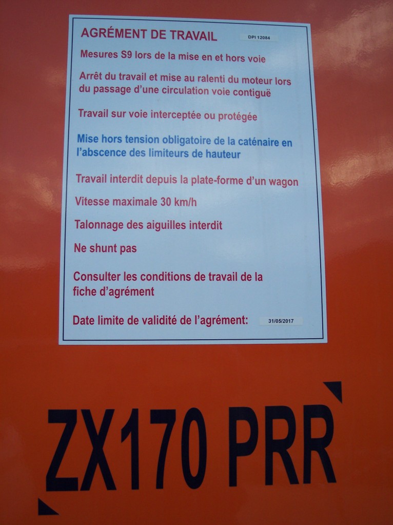 voici la pelle D2R ZX 170 PRR agrément de travail n° DPI 12084 validité 31/05/2017