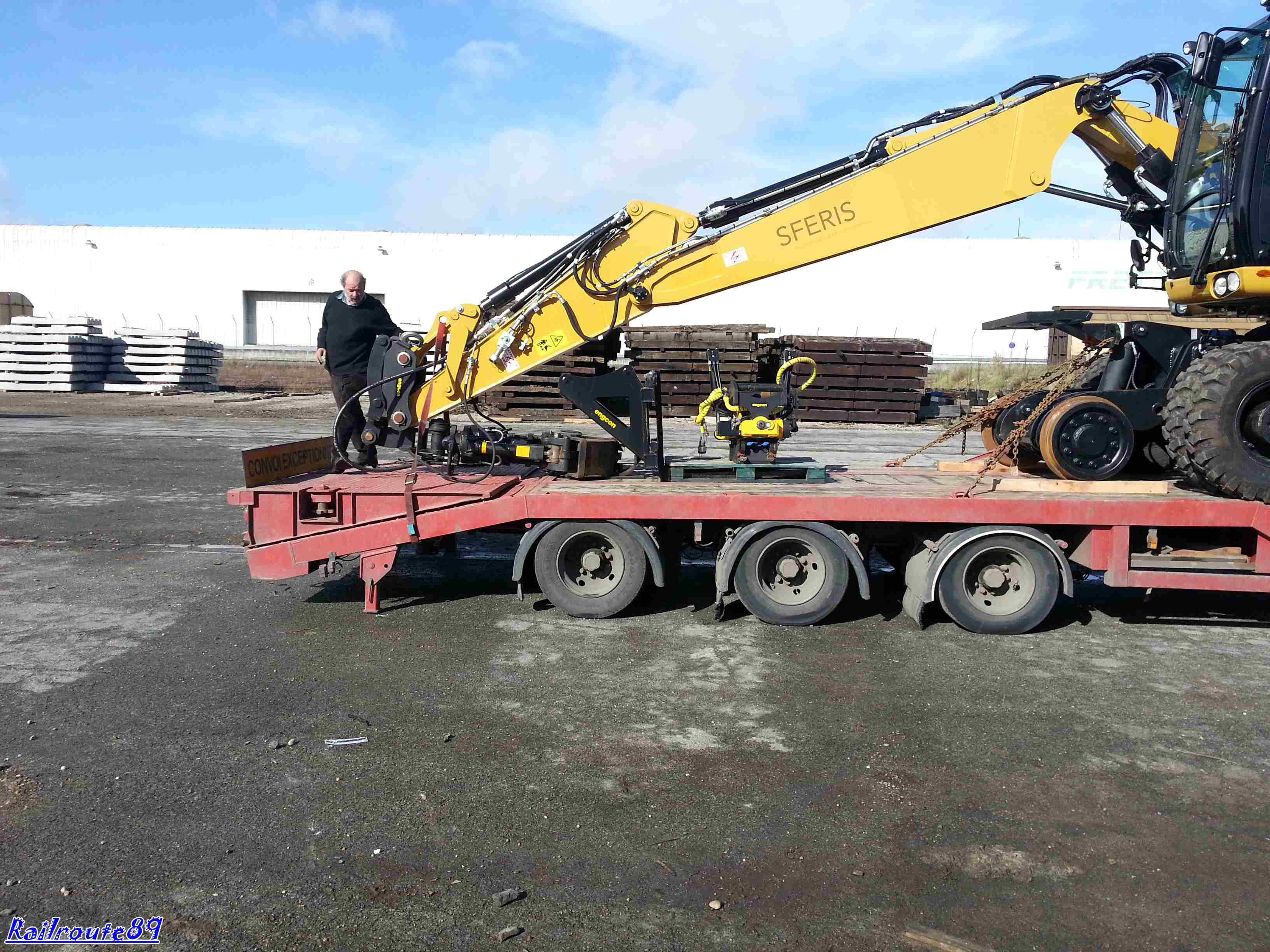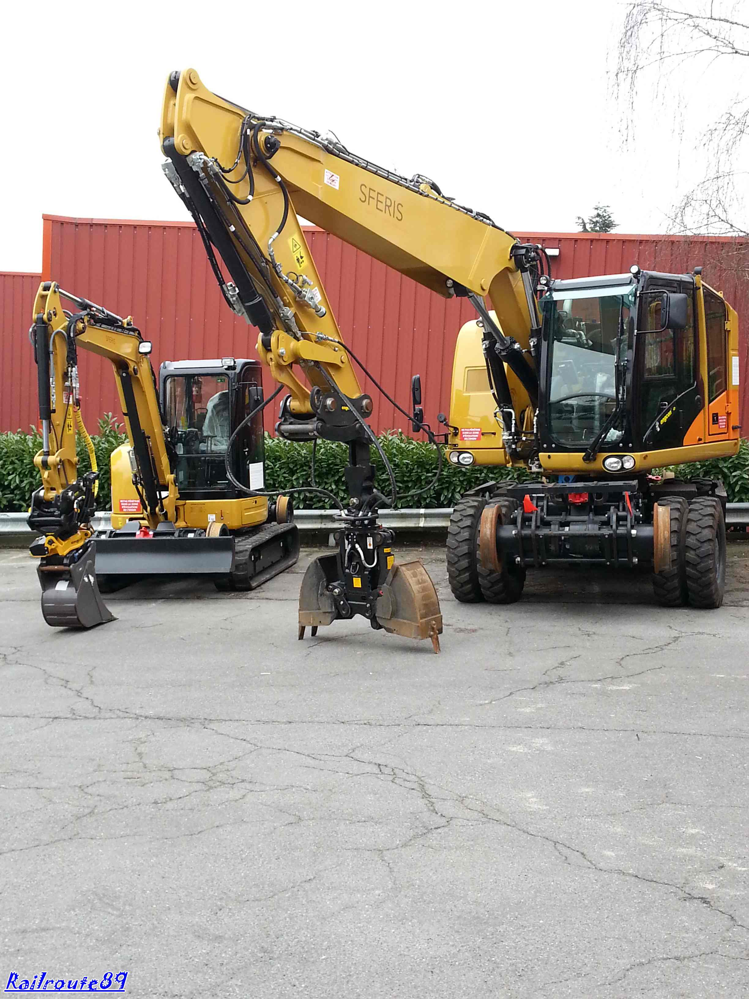Pour mon dernier postage de la soirée(ou de la nuit vu l'heure) :pt1cable: c'est donc mon jouet que je vous présente...Déjà bien connue dans le milieu ferroviaire, il s'agit d'une 22TRR équipée comme toutes nos pelles d'un tiltrotator Engcon avec jeu de fourches(pour les 22TRR seulement), BP Kinshofer avec coquilles interchangeables de 300 et 800 (petit point négatif le volume de chargement plus faible à équivalence de taille avec une Arden Equipment), d'un groupe bourrage Hydrocal (pas encore opérationnel car obligé de tirer une troisième ligne auxiliaire plus un retour huile hydrau Hydrocal/pelle) personnellement et cela n'engage que moi comparé au groupe bourrage que j'utilisais avant je pense qu'il y avait mieux à acheter car apparemment très fragile d'emploi avec les nouvelles courroies d'entraînement (Dire du gérant qui nous a vendu le gpe).Pour finir j'ai fais quelques recherches car Sferis envisage un godet Mourgeon... :bravo2: J'aimerais bien également un palonnier à traverses et rails hydraulique... :siffle: L'arrivée de sa petite soeur est pour bientôt... :supercontent: