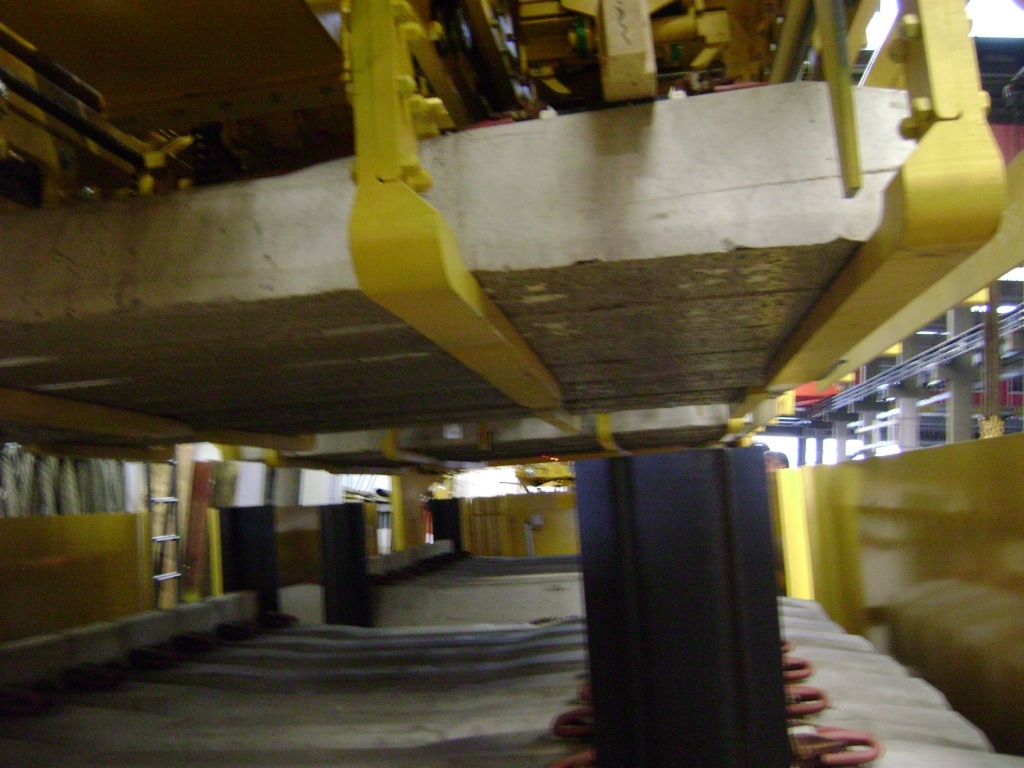 En Allemagne, c'est différent: Les traverses sont chargées directement sur les WTT, sans palettes. Cette fois en travers, ce qui permet de les faire disposer directement par le portique sur le tapis du WM. perso, je connais les wagons Slps de l'entreprise Leonhard Weiss qui sont, en fait, des wagons plats de construction assez simple sur bogies Y 25 soudés, équipés de rails de guidage. http://www.goederenwagens.nl/gallery3/i ... 110813_046