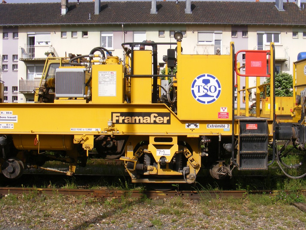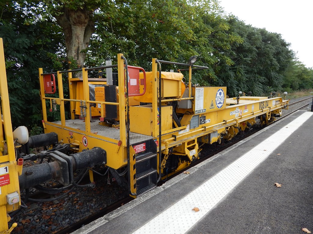 Voici le wagon stabilisateur avec la Bourreuse 99 87 9 121 525-9 Type 109-3X de TSO n°3445