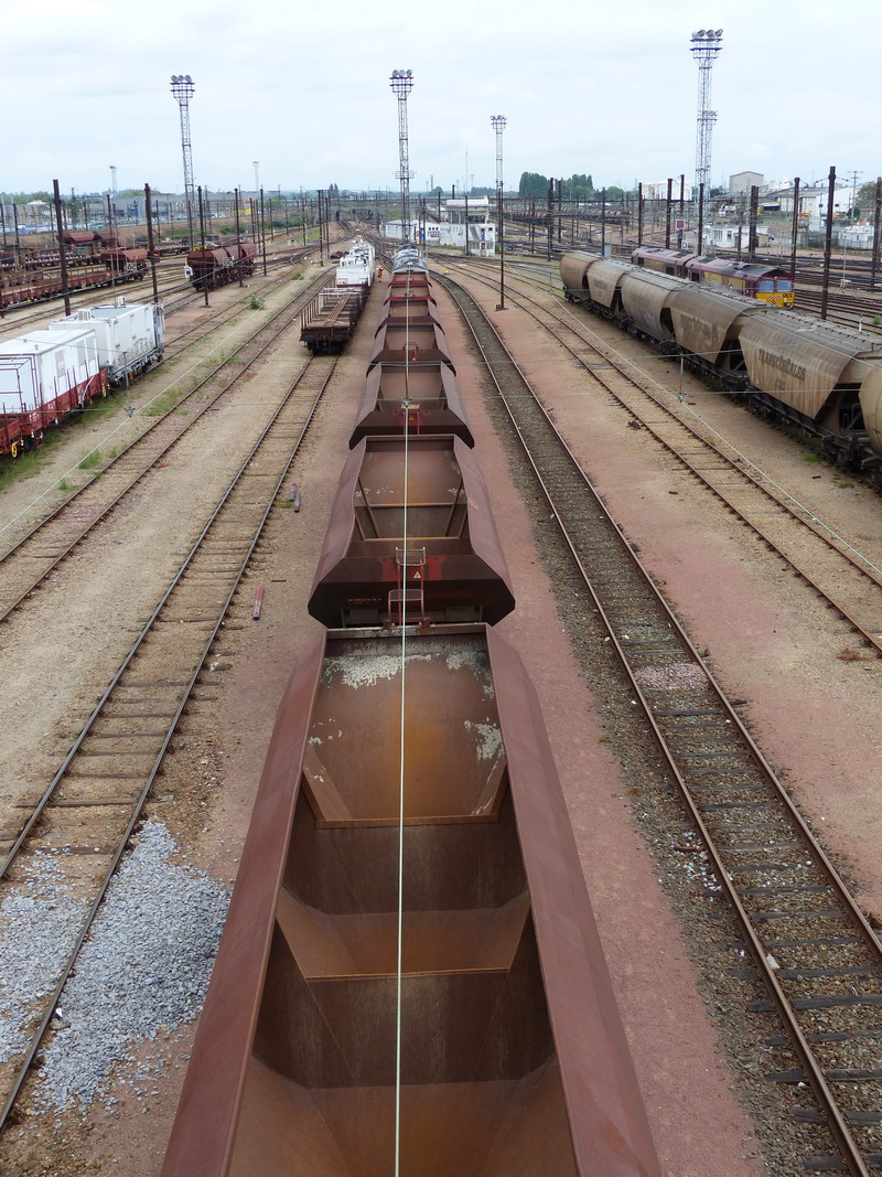 Voici la machine qui arrive de l'ouest à 15h32 sur la zone de garage des rames Infra/SNCF de SPDC le lundi 20-10-2014