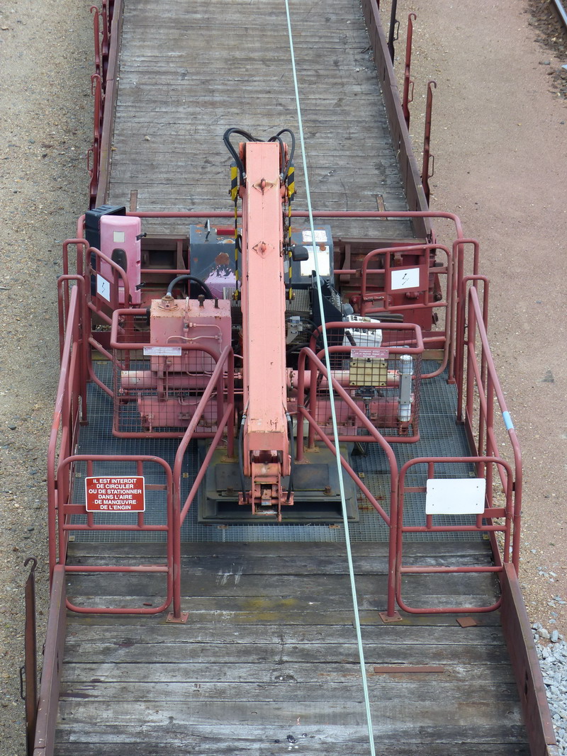 Voici le wagon 80 87 979 6 100-6 Uas - SNCF-LY avec sa grue benne ATLAS d'E.C.V.I Ã Ludres 54