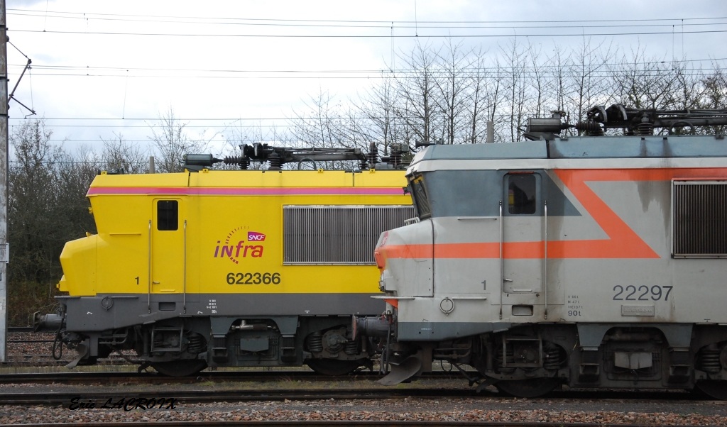 Bonjour Voici la 622366 qui arrive de l'ouest à 15h35 avec la 667433 sur la zone de garage des rames Infra/SNCF Saint Pierre des Corps le vendredi 22-08-2014