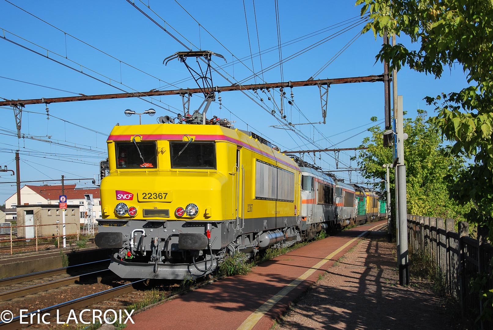 Voici la machine qui arrive du Sud-ouest à 15h25 avec une belle rame Infra sur la zone de garage des rames Infra/SNCF Ã