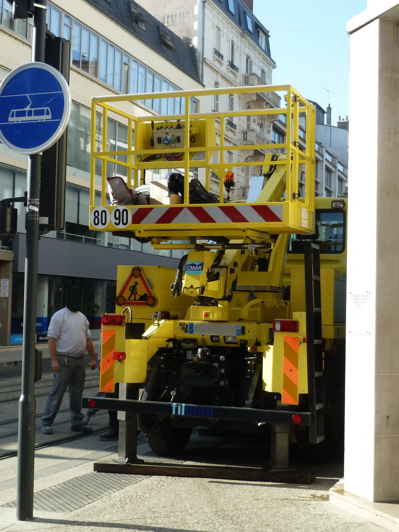 Voici le camion Unimog U 400 Rail Route avec une nacelle pour la maintenance de la caténaire et le remorquage des rames HS