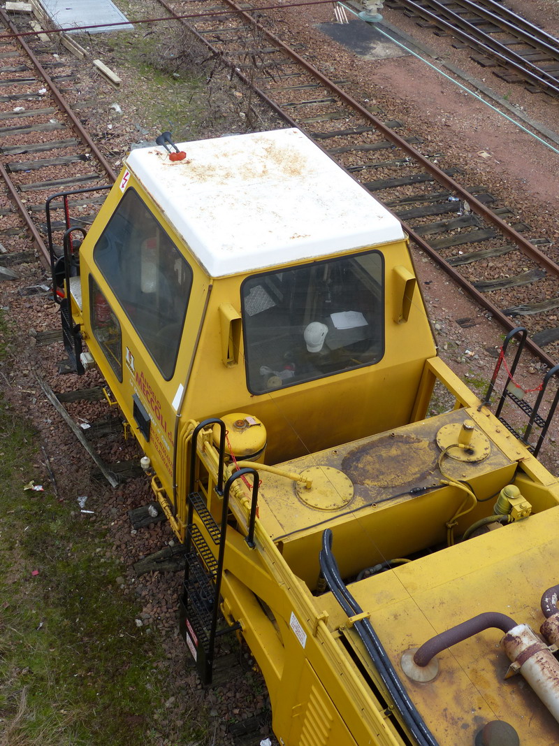 il y a une petite base de travaux Meccoli à Tours avec 4 pelleteuses Rail Route avec la Bourreuse