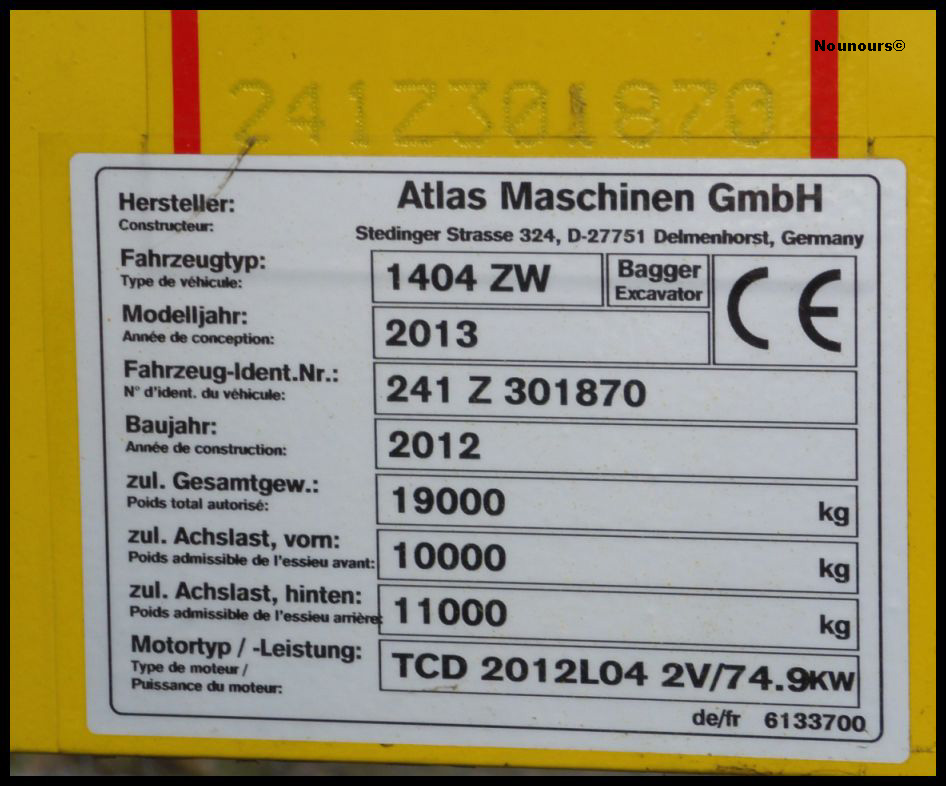 Voici la Pelleteuse ATLAS 1404 ZW 4 n°241 Z 301 870 (DPI 12 178) de Meccoli pour les travaux sur les voies de la gare de Tours