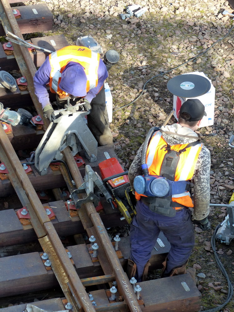 Vendredi 06-03-2015 séance de découpe avec une tronçonneuse RAILTECH sur l'aiguillage 5