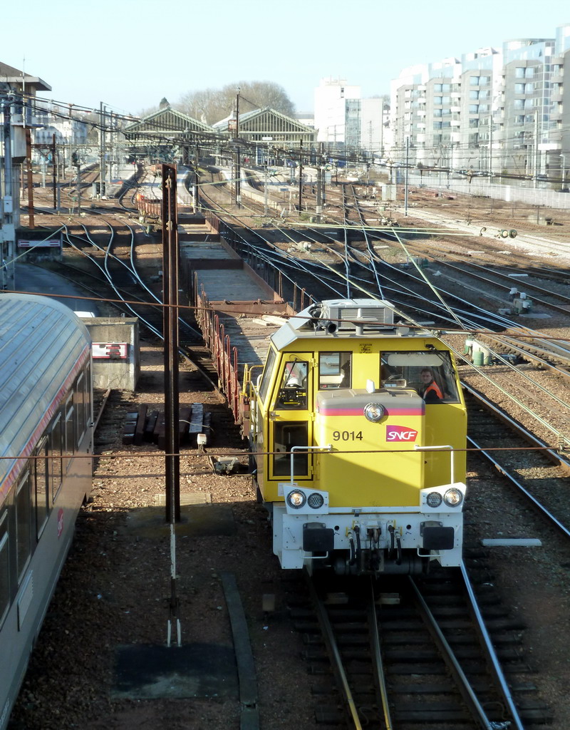 Bonsoir le locotracteur Y 9014 manœuvre une rame de 6 wagons R39 vide en gare de Tours pour SPDC le lundi 09-02-2015 Travaux du RVB gare de Tours le 09-02-2015 des photos et la composition de la rame sur http://www.forum.sttx.fr/viewtopic.php?f=121&t=6942