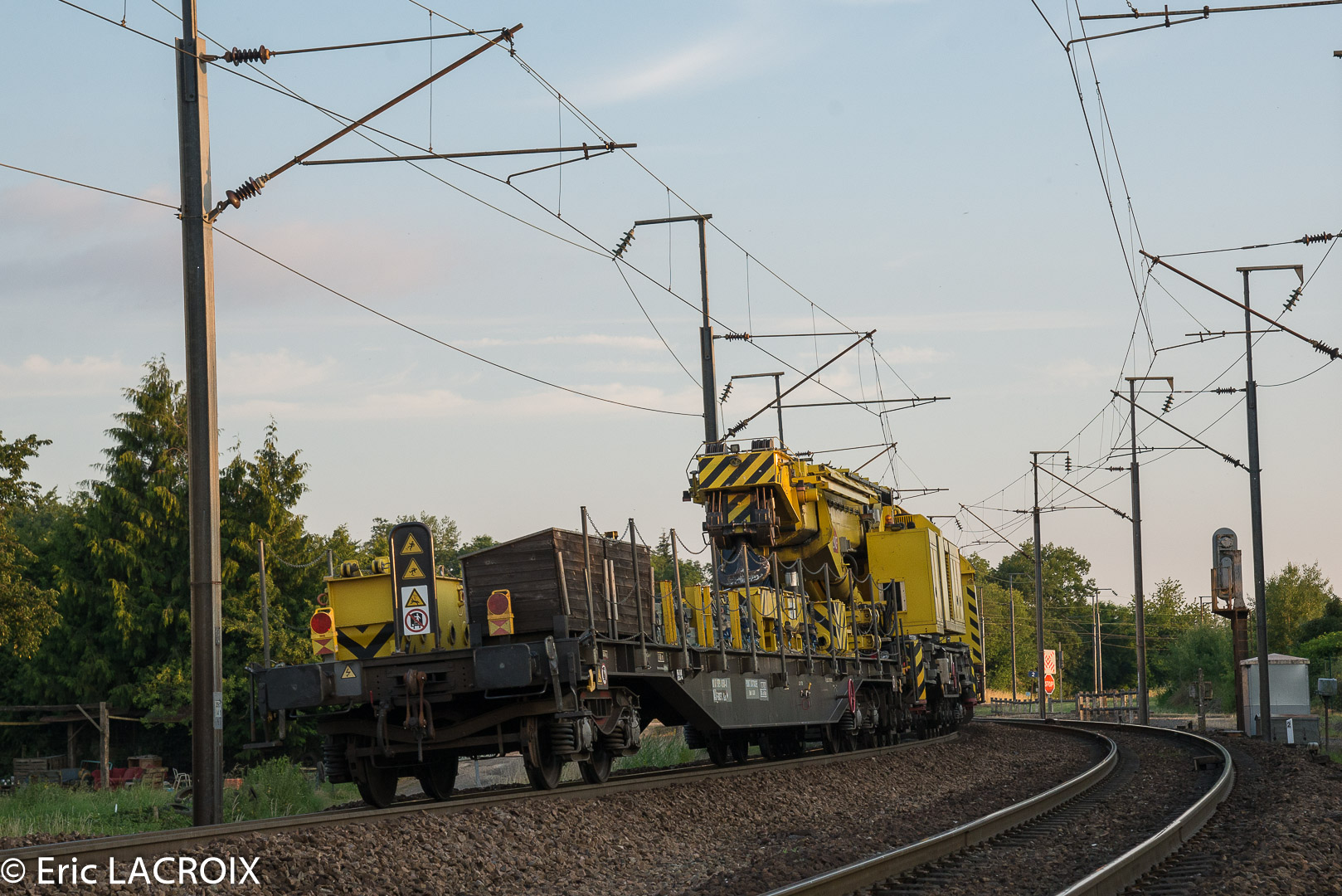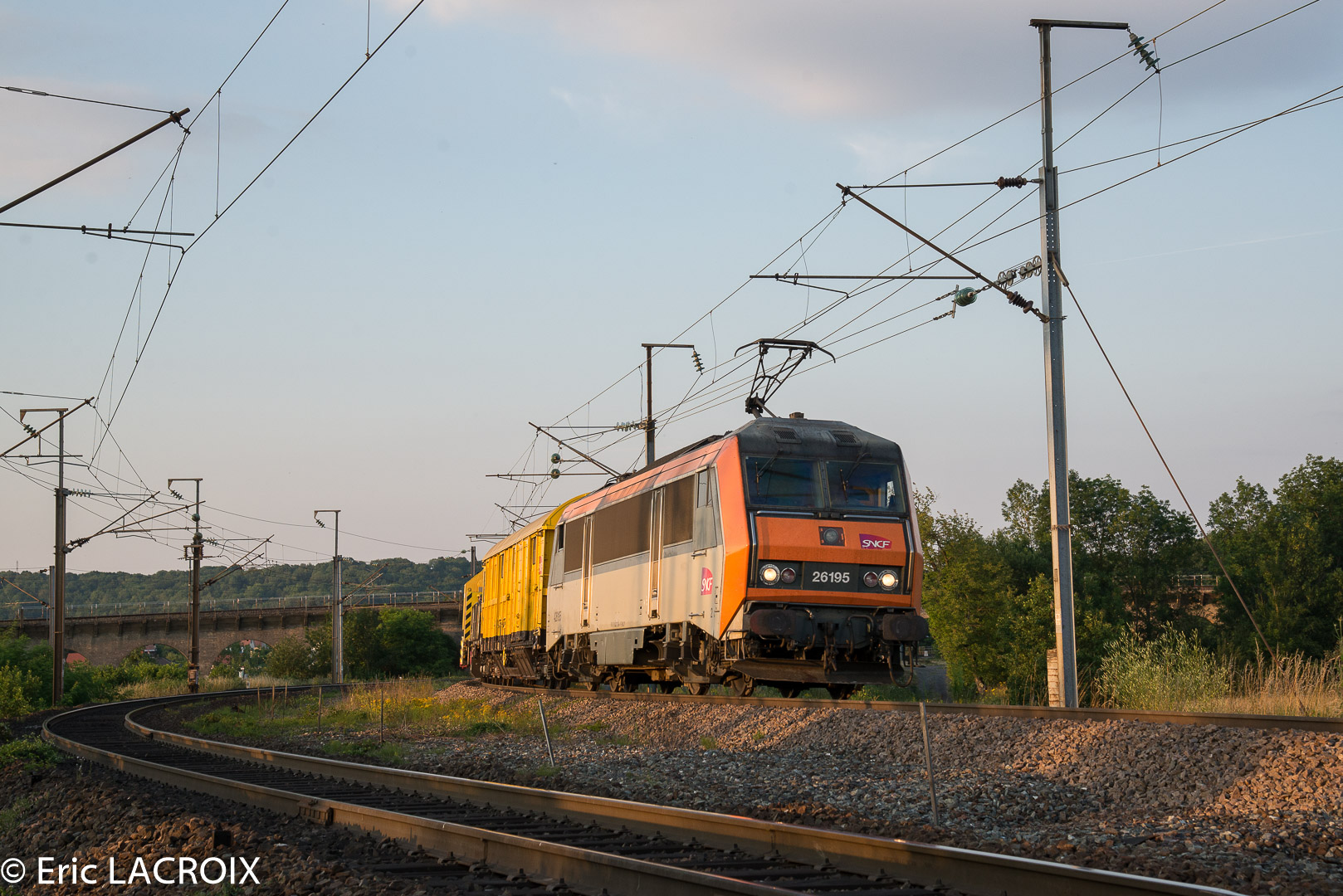 26195 en tête de la grue KIROW passe à Chalindrey en direction de Dijon en juin 2018.