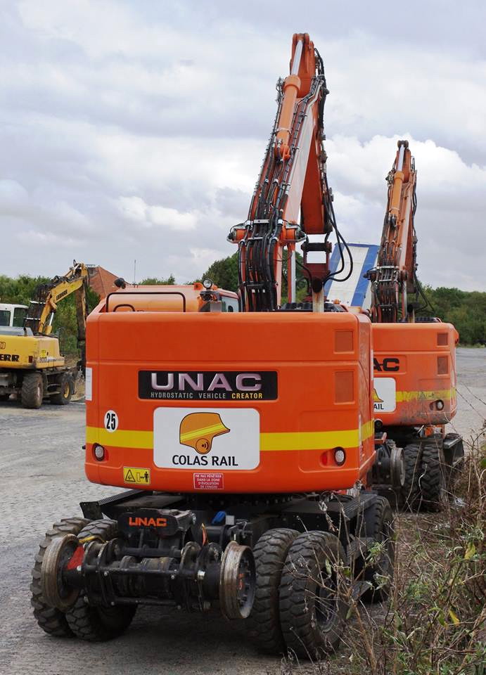 Voici une nouvelle Pelle l'UNAC 22 TRR UP 2 n°EY 200 120 U de 2015 pour Colas Rail D1003088 - UNAC 4 - UNAC EST