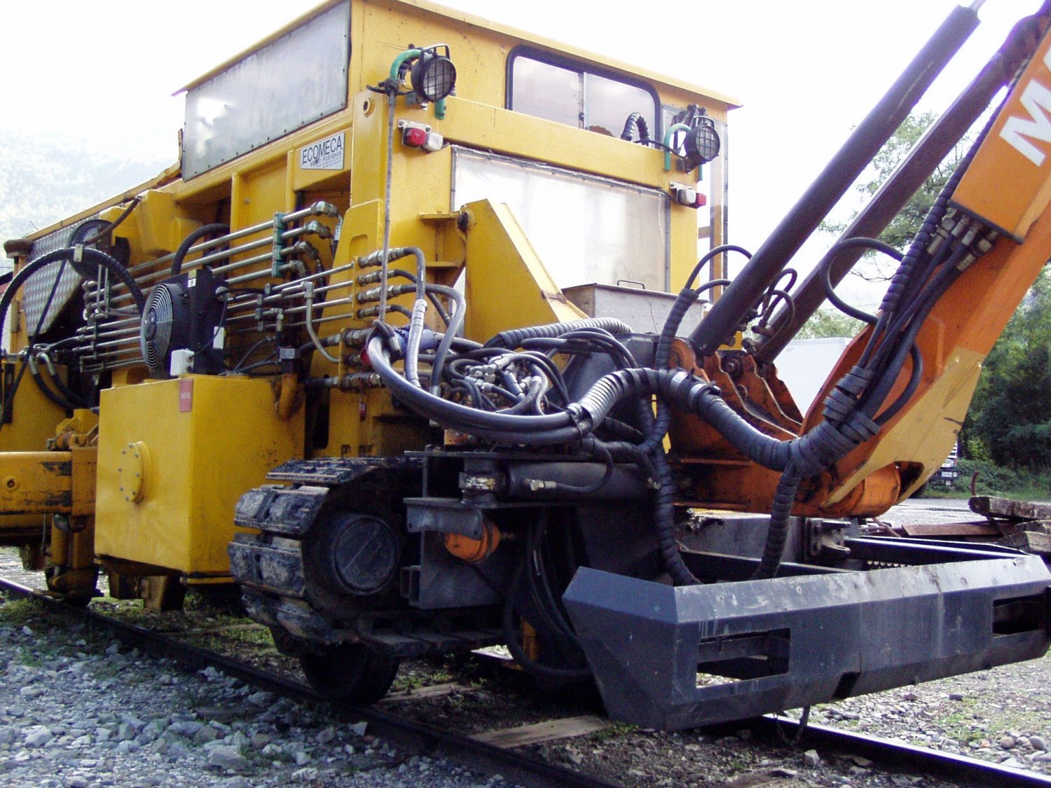Les chenilles permettent surement de le charger sur un plateau et peut etre d'atteindre les talus trop eloignés de la voie. C'est une ligne à trtaffic faible qui ne necessite pas de moyens lourds et couteux.