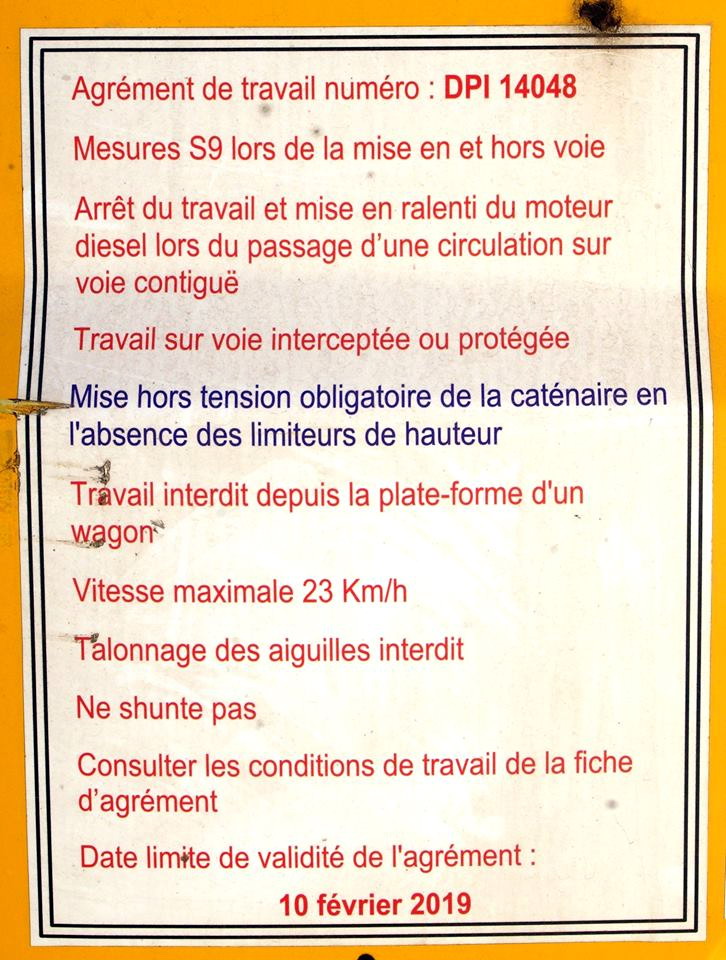 la plaque est derrière un des essieux ferroviaires et il faut attendre que la pelle soit en position haute pour la découvrir