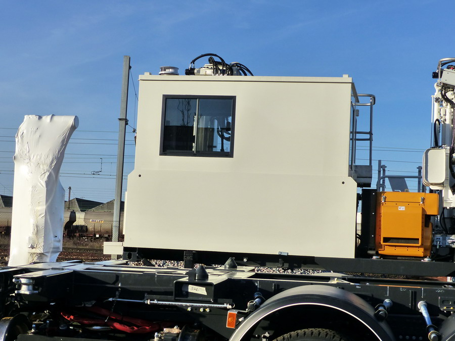 Voici le camion A3772-A Socofer n°911- 2016 avec un module Nacelles caténaires A3772-C Socofer