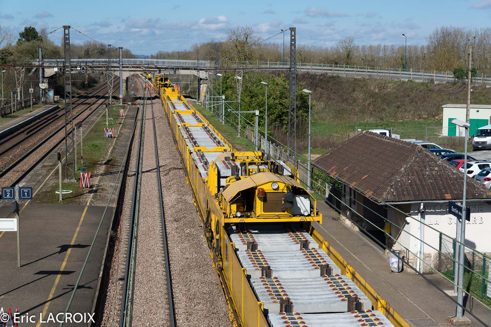 Train de renouvellement P95 MATISA Transalp Renouvellement à Villeneuve la Guyard le 22 mars 2017.