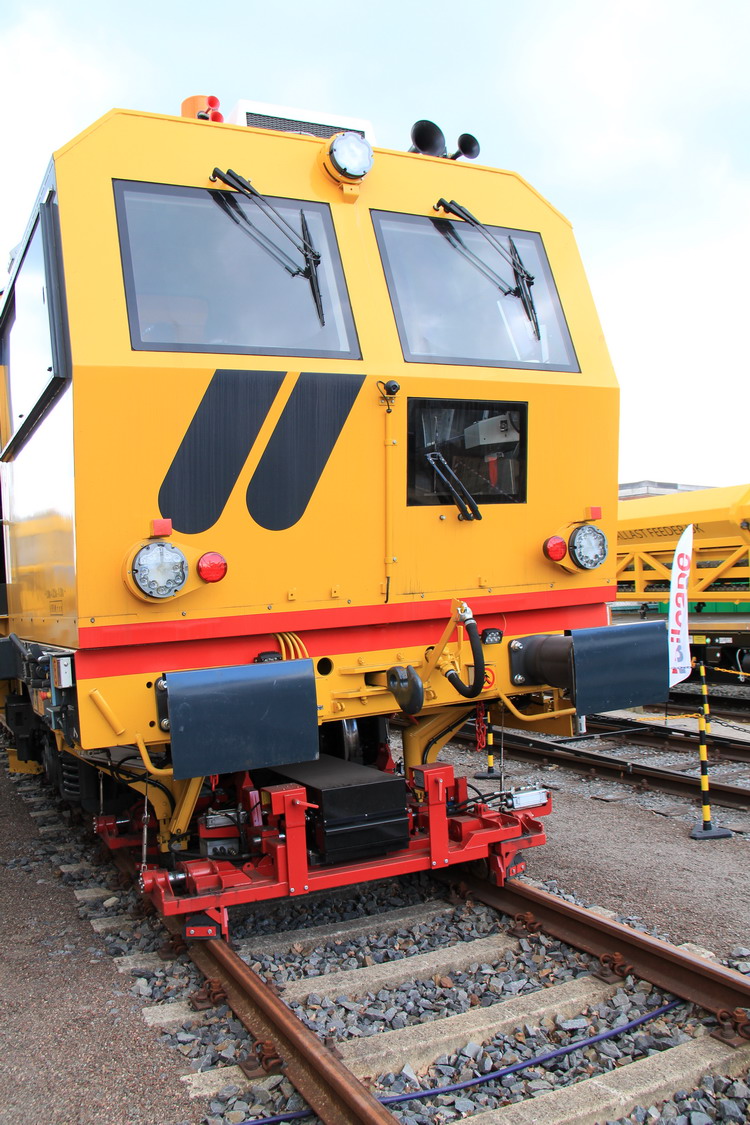 Voici la nouvelle génération de Bourreuse de voies et d'appareils sur le stand de Plasser & Theurer pour l'exposition Ferroviaire IAF Münster 2017 en Allemagne du 30 mai au 01 juin 2017