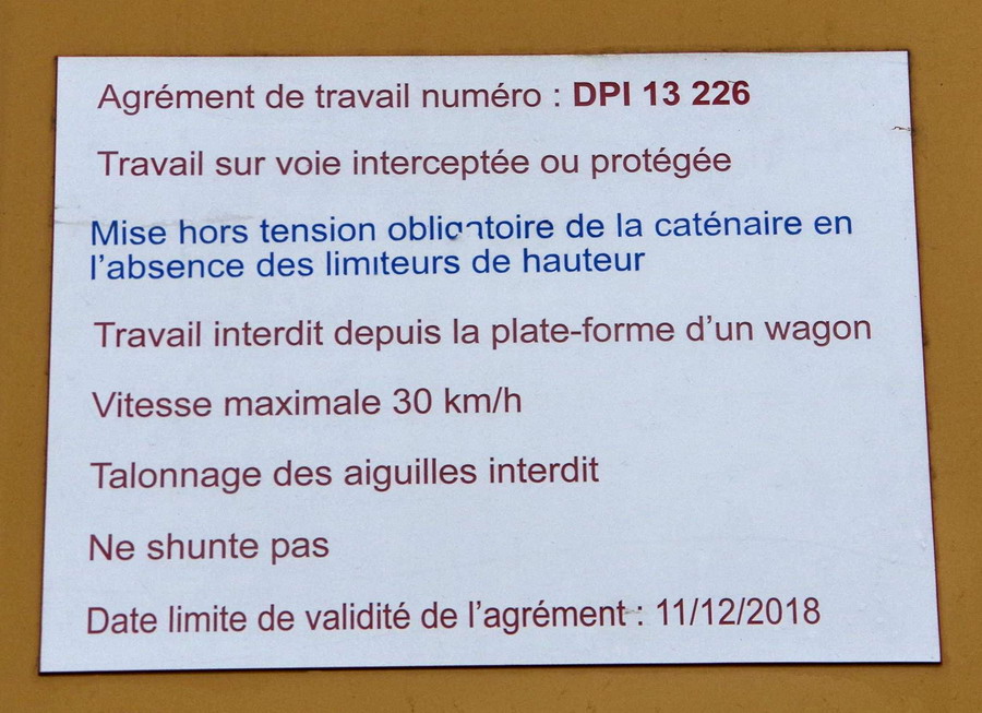 SNCF Infralog NPDC - n° de parc Infra W076 - Agrément de travail : DPI 13 226 - 17-12-2018