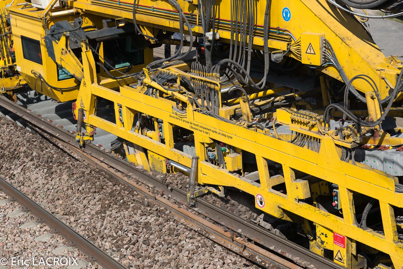 Train de renouvellement P95 MATISA Transalp Renouvellement à Villeneuve la Guyard le 22 mars 2017.