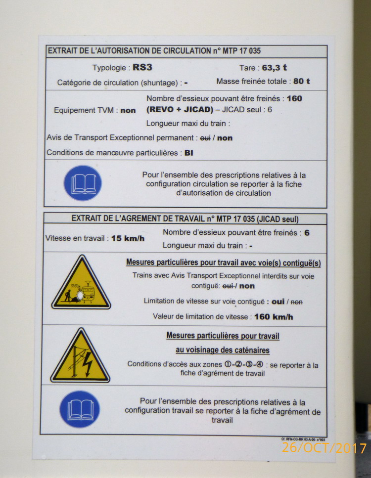 il fait partie de la rame REVO (matériel travaillant sur la zone denses) pour l'enlèvement et la dépose des coupons de rail