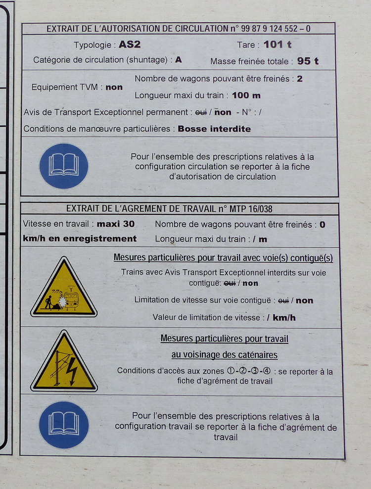 Tare 101 t - longueur 33,220 m - Agrément de travail MTP 16 038 - 31-03-2016 / 31-03-2019