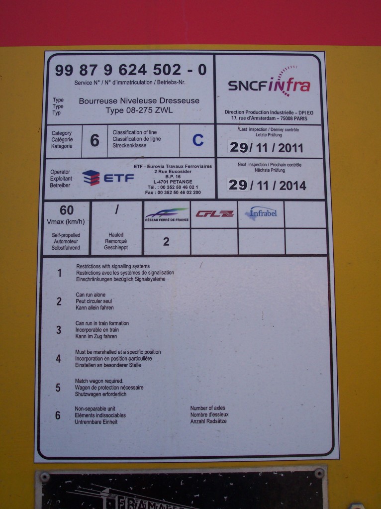 pour une expertise de l'engins 08-275 ZWL de Framafer n°314 - 2002 ETF Agence du Luxembourg 5200326