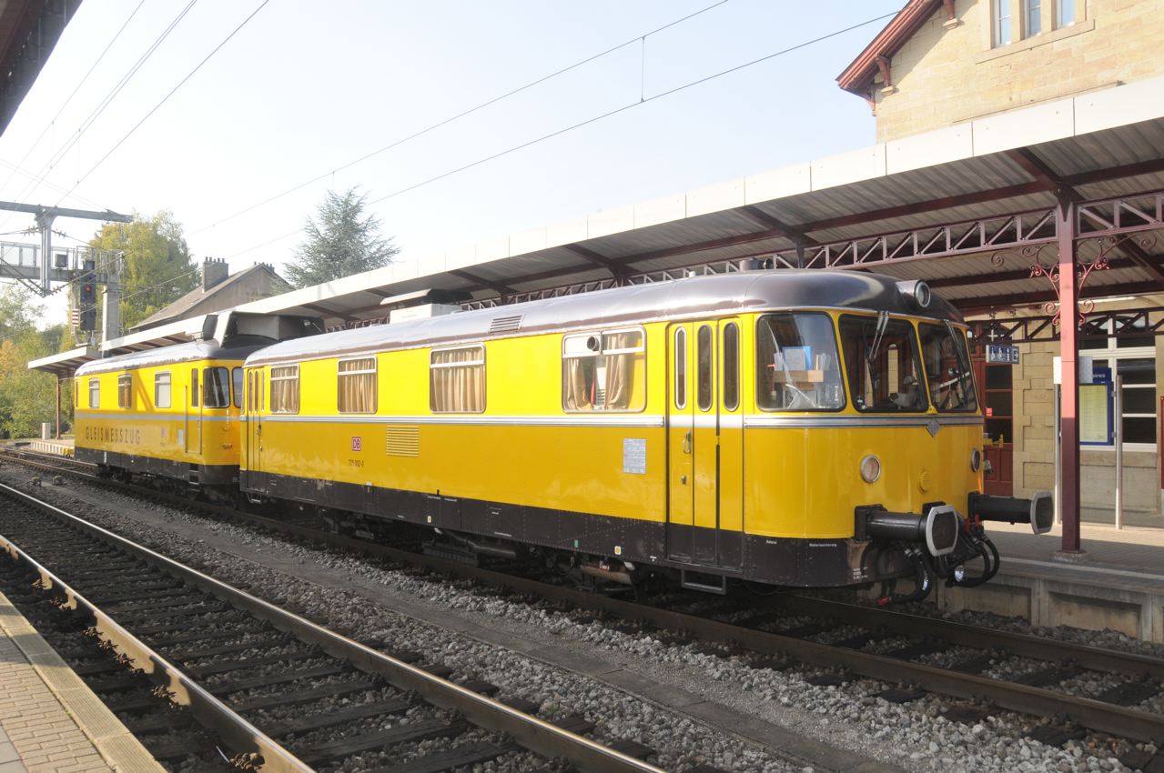 Voici le GLEISMESSWAGEN  725 002-0  en gare de Pétange (Luxembourg).