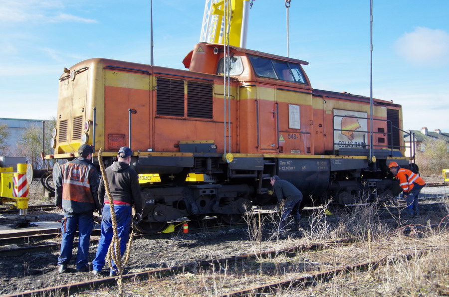 - une grue mobile LIEBHERR LTM 1100-4 de 100T pour le levage de la machine à Chaulnes le 06-03-2018