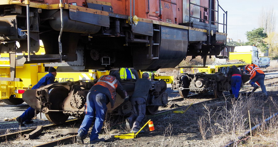 on retire les bogies après le soulèvement de la machine à Chaulnes le 06-03-2018
