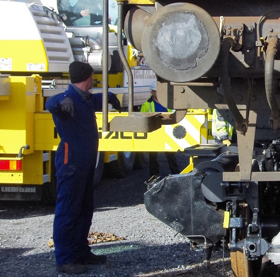 mise en place des bogies d'origine révisés après le soulèvement de la machine à Chaulnes le 06-03-2018