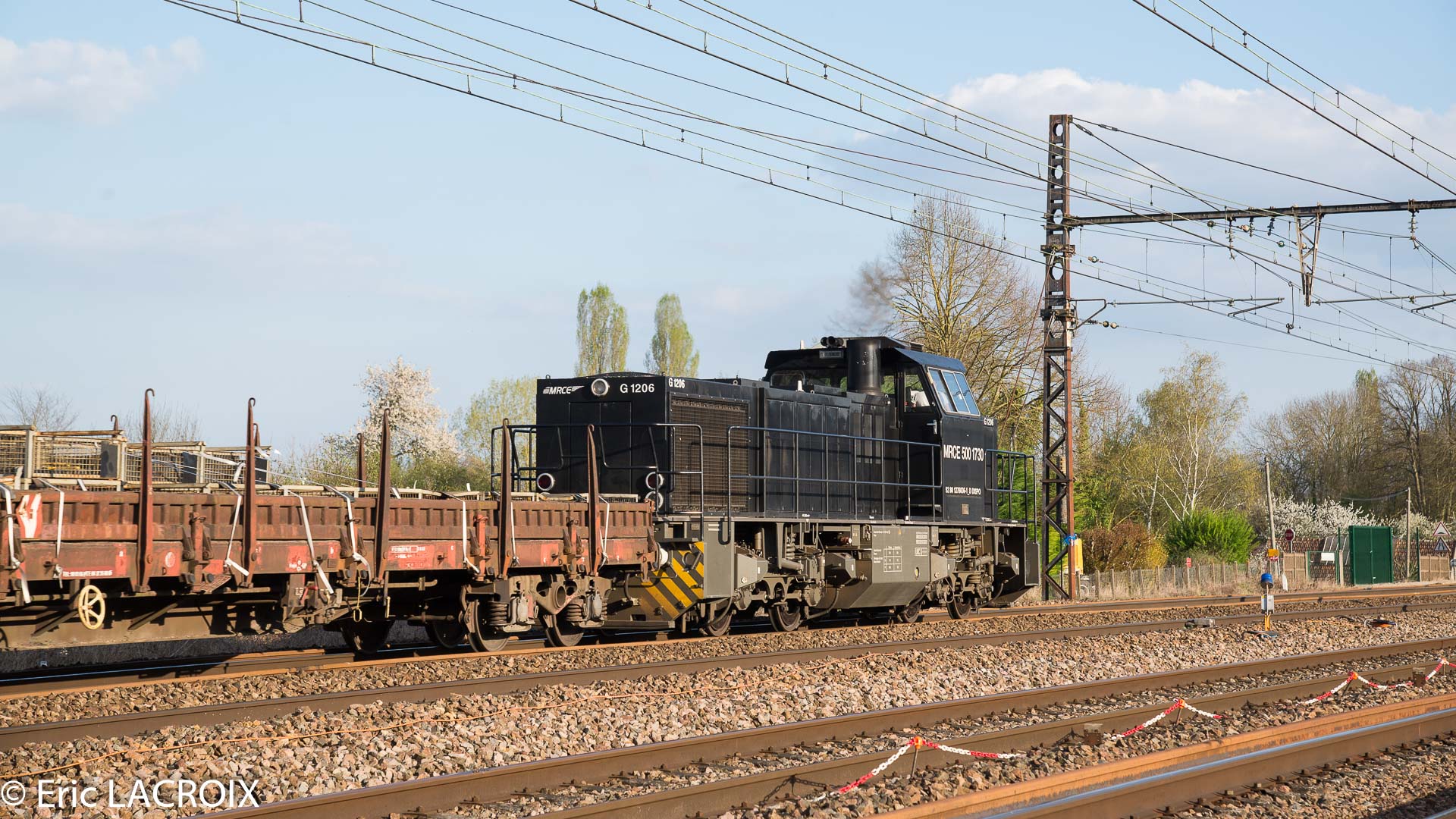 G1206 BB 5001730 - 92 80 1276 036-1 louée à ETMF en tête du train de renouvellement P95 MATISA Transalp Renouvellement passe à Villeperrot (89) pour rejoindre la base de travaux de St Florentin. Avril 2017.