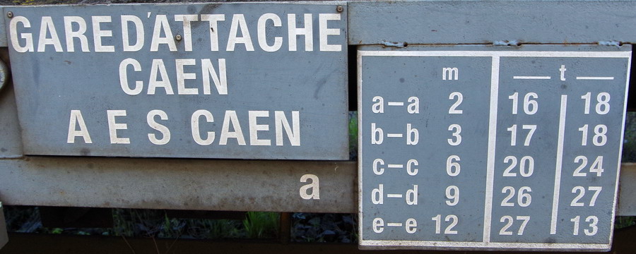 Voici le wagon plat à essieux 40 87 959 4 034-0 K55 2 F SNCF-RO gare d'attache Caen - AES Caen avec le 031-6 sur une rame Infra qui arrive
