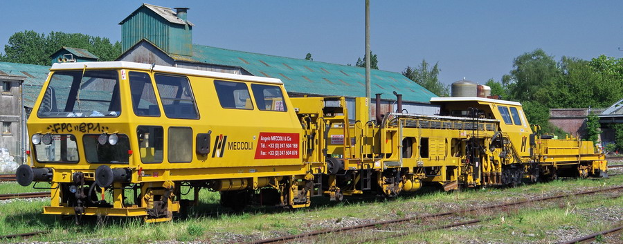 nous somme gare de Chaulnes (80) avec la base de travaux Meccoli il y a une Bourreuse