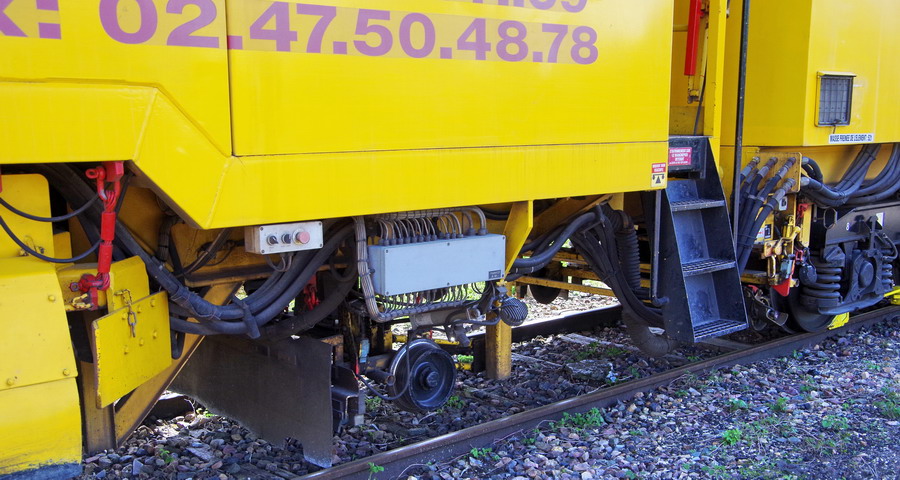 La voici sur la base de travaux de la gare de Chaulnes (80) le 30 mai 2018 avant son départ pour le PK 32 à Rousières-en-Santerre