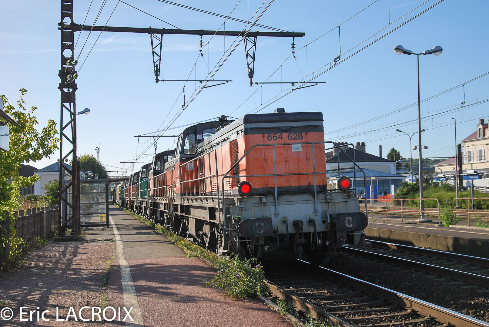 BB 64628 en queue d'un TM de 12 engins passe à Montereau (77) en direction de Paris - septembre 2016.