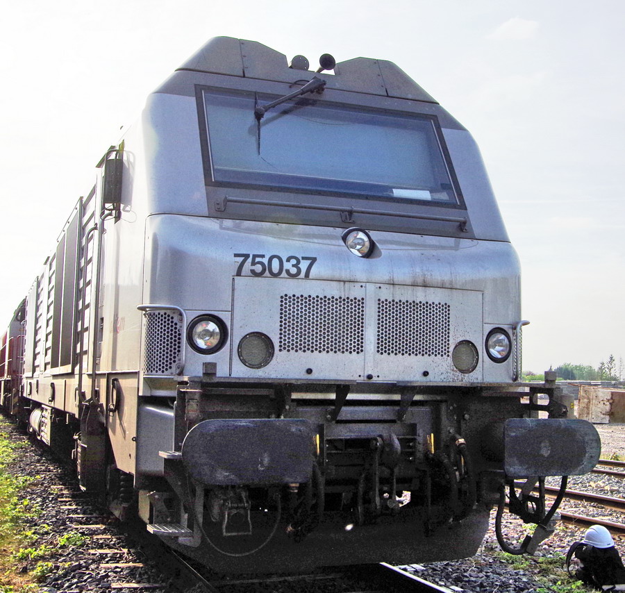La BB 75037 mise en service le 27-07-2007 pour Fret SNCF en livrée verte puis propriétaire d'AKIEM en livrée grise