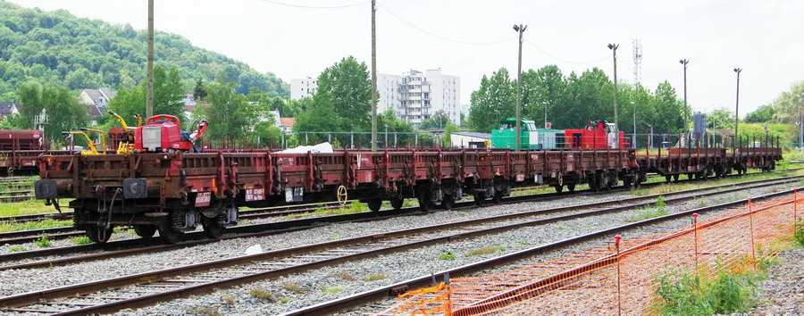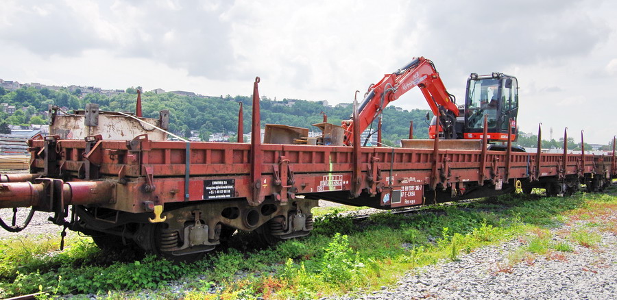 wagon plat 33 87 3997 306-7 Res R90 6 RIV F-ERSA + pelle Kubota KX080-4A d'AEB sur la base de travaux de Laon le 25-05-2018