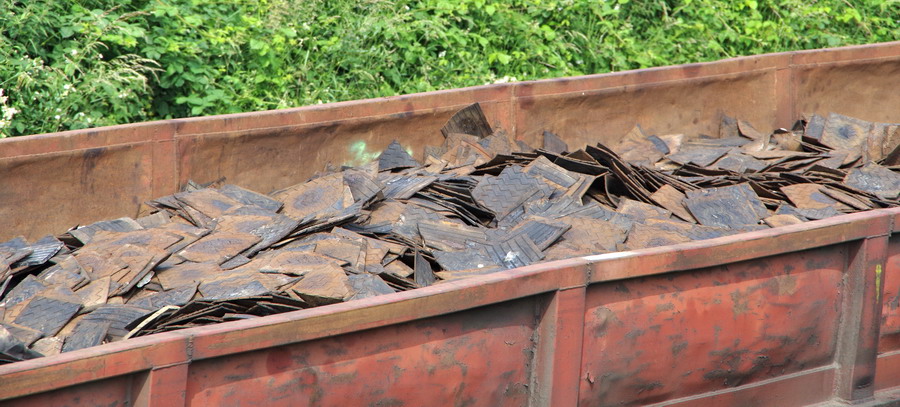 . wagon 5 WF - force avec poutre : évacuation du ballast, enlèvement des anciens rails et pose de nouveaux longs rails soudés