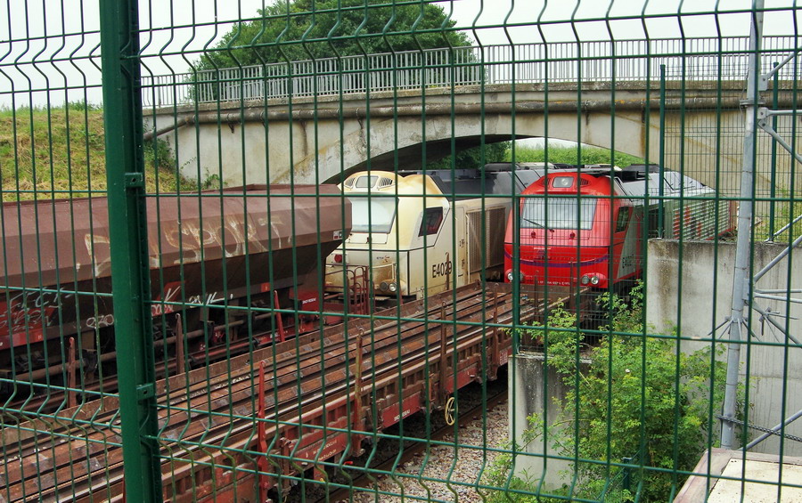 la rame avec la E 4027 VFLI au niveau du pont rue Jacques Deflandre