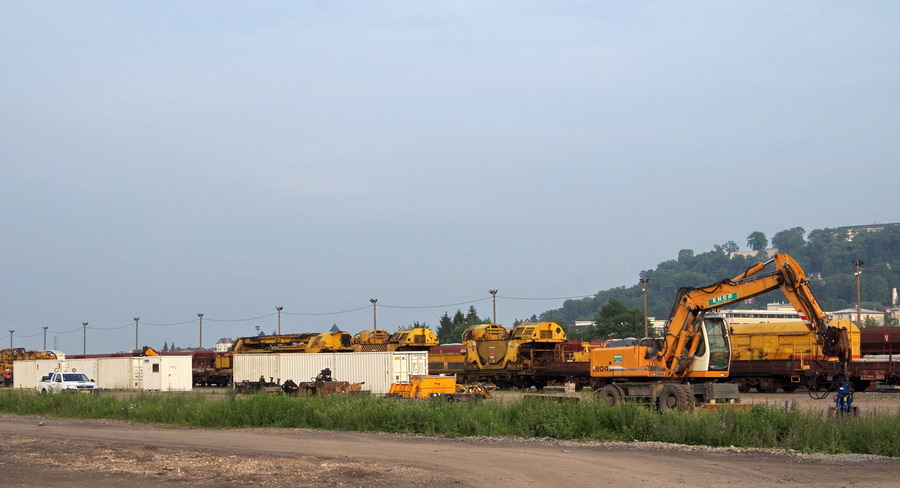 et avec une Pelle route une Liebherr 904 location Enco n°WLAZ1005LZK050808 sur la base de travaux de la gare de Laon le 08-06-2018
