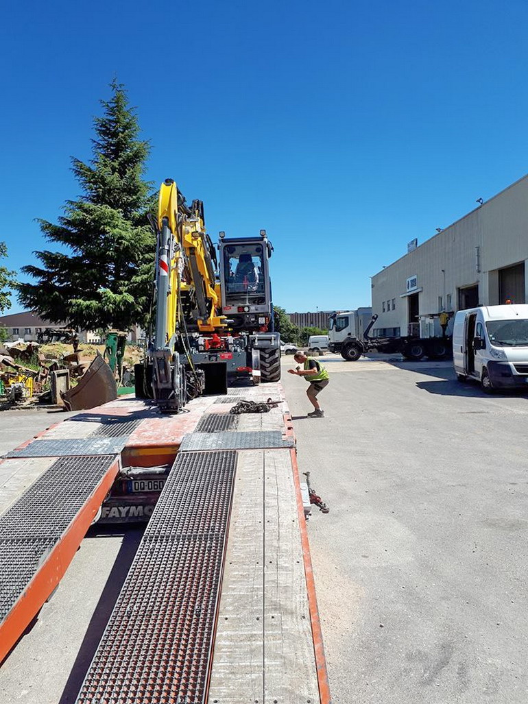 Voici le chargement d'une nouvelle Pelle Rail route à la sortie des ateliers de la société SAS François Pierre à Longvic Dijon (21)