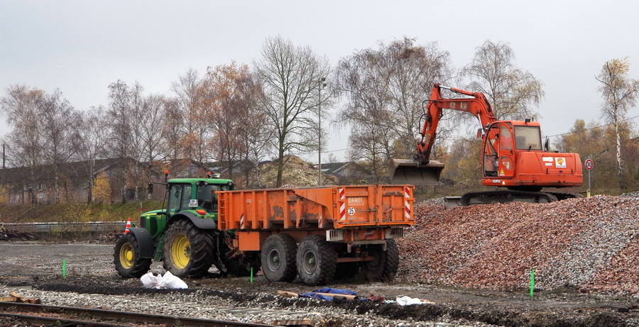 - Tracteur John Deere Team3 6920 avec remorque DANEL de Beauval (transport du ballast) http://www.remorquesdanel.com/