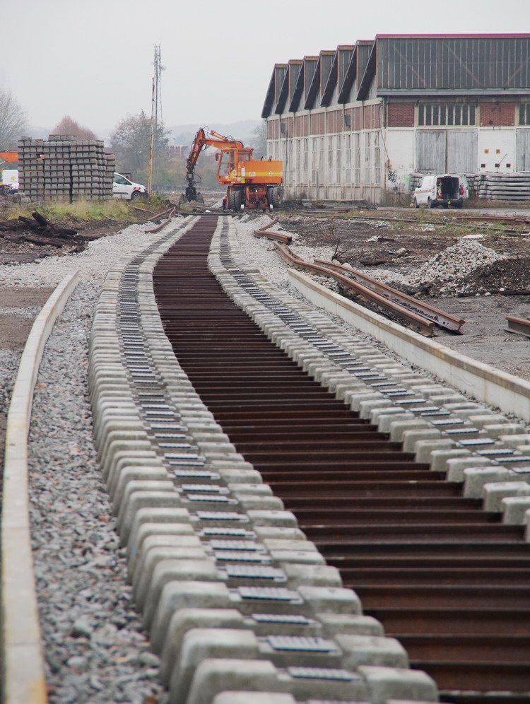 la nouvelle voie avec des traverses bibloc neuves sur le site de travaux de Longueau le 26-11-2018